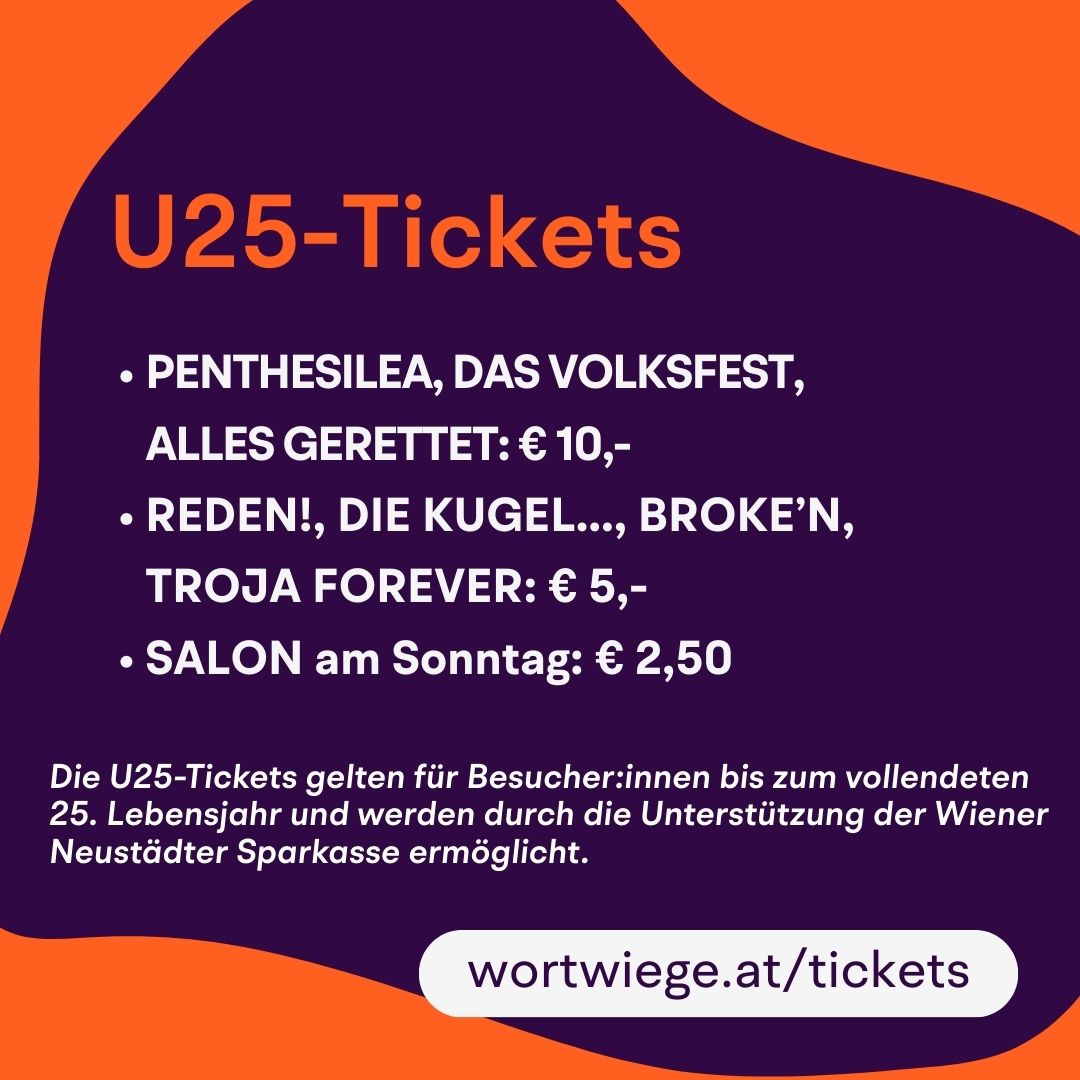 Die U25-Tickets für Besucher:innen bis zum vollendeten 25. Lebensjahr werden durch ein Sponsoring der Wiener Neustädter Sparkasse ermöglicht. Alle PLAY! Vorstellungen sind ab jetzt auch auf Ticketgretchen verfügbar, dort sogar mit Ermäßigung für alle unter 27 Jahren.