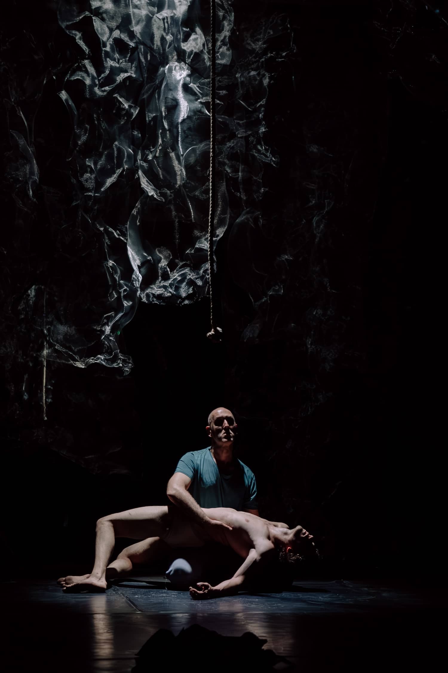Physical theatre, dance, music and video art about a fallen angel